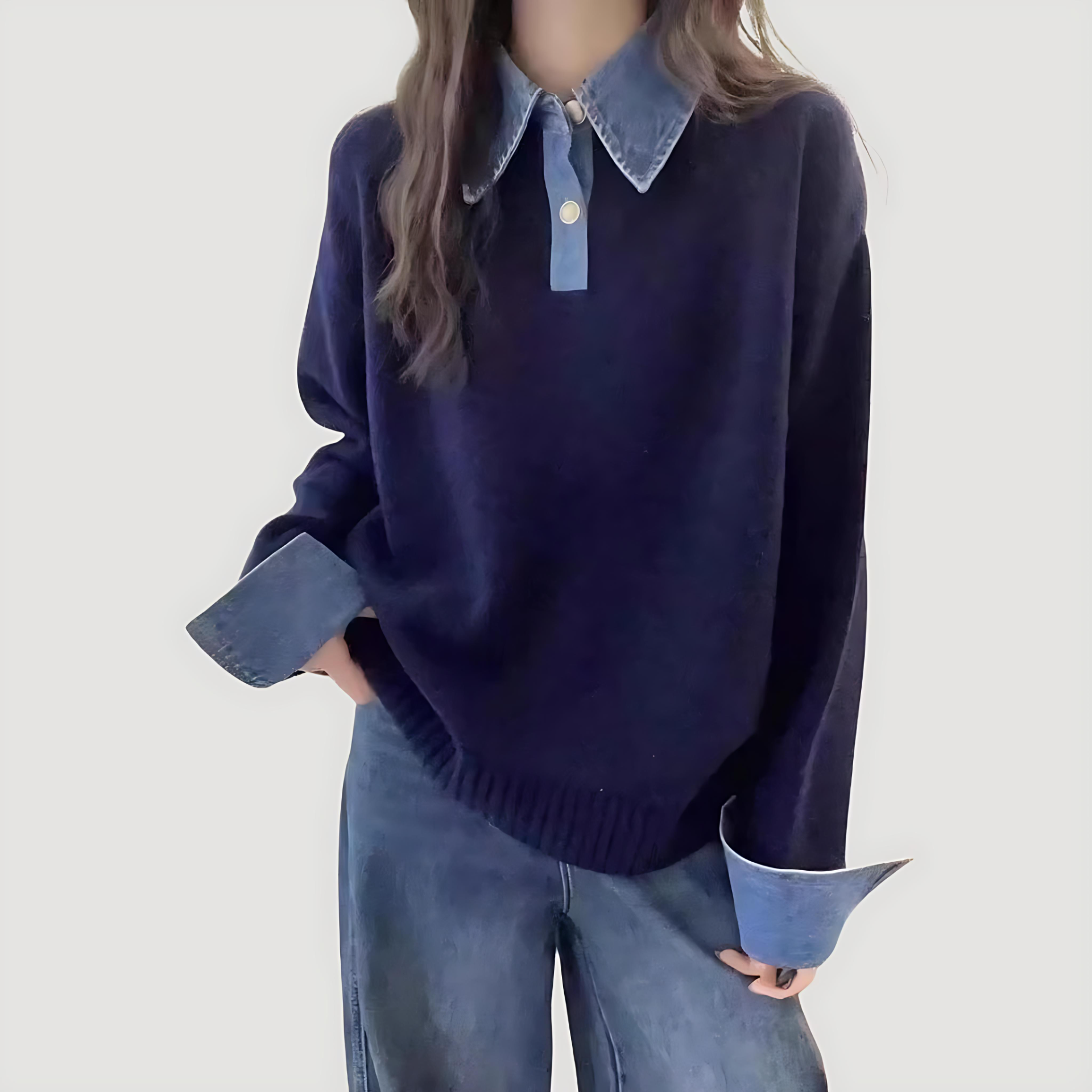 Ulepsz swoją zimową garderobę dzięki eleganckiemu damskiemu swetrowi zimowemu, który łączy ciepło z modnym stylem. Przytulny dzianinowy korpus z kontrastowym kołnierzem i mankietami w stylu koszuli oraz luźny krój i długie rękawy zapewniają komfort i doskonałe okrycie w chłodne dni. Idealny do noszenia na co dzień, ten wszechstronny sweter świetnie komponuje się z dżinsami, dopasowanymi spodniami lub plisowanymi spódnicami, tworząc elegancki wygląd na każdą okazję. Dodaj ten must-have do swojej kolekcji i ciesz się stylem oraz wygodą przez całą zimę.