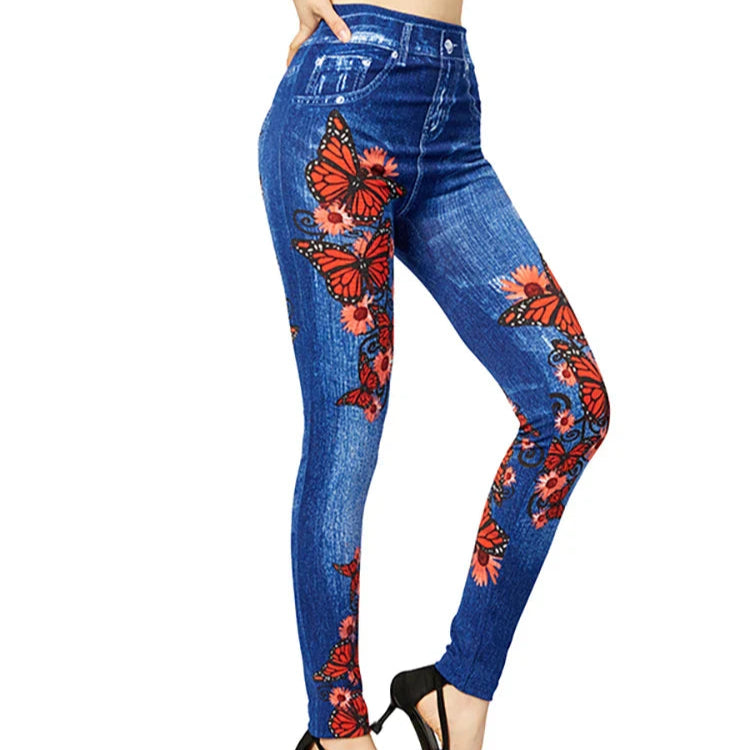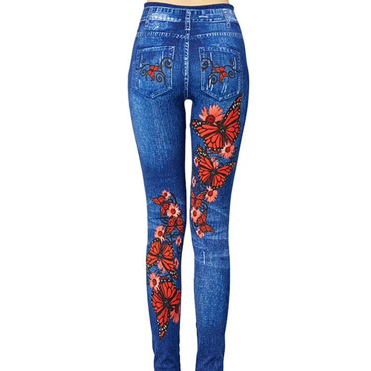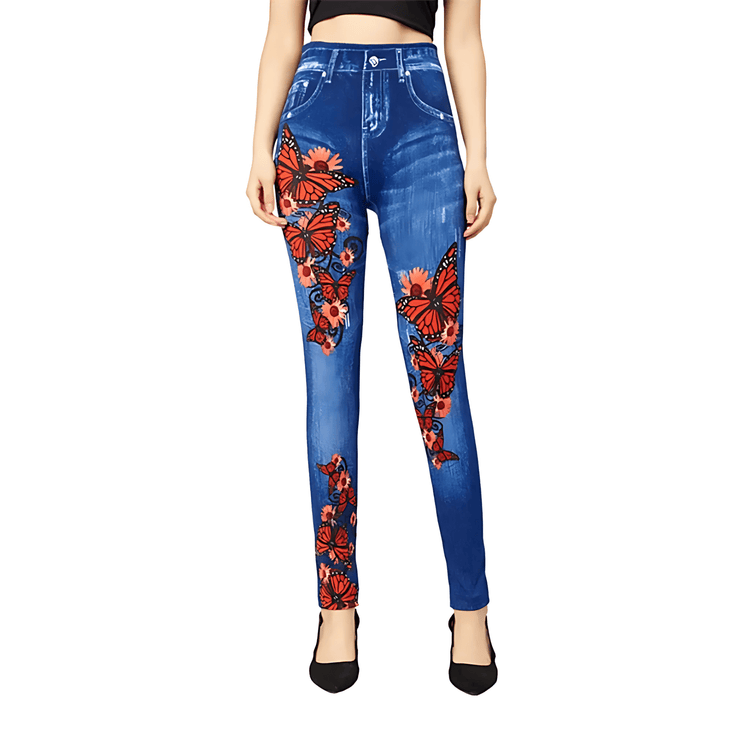 Damska - Wygodne jegginsy - Wysokim stanem i motywem motyli - Idealne na każdą okazję