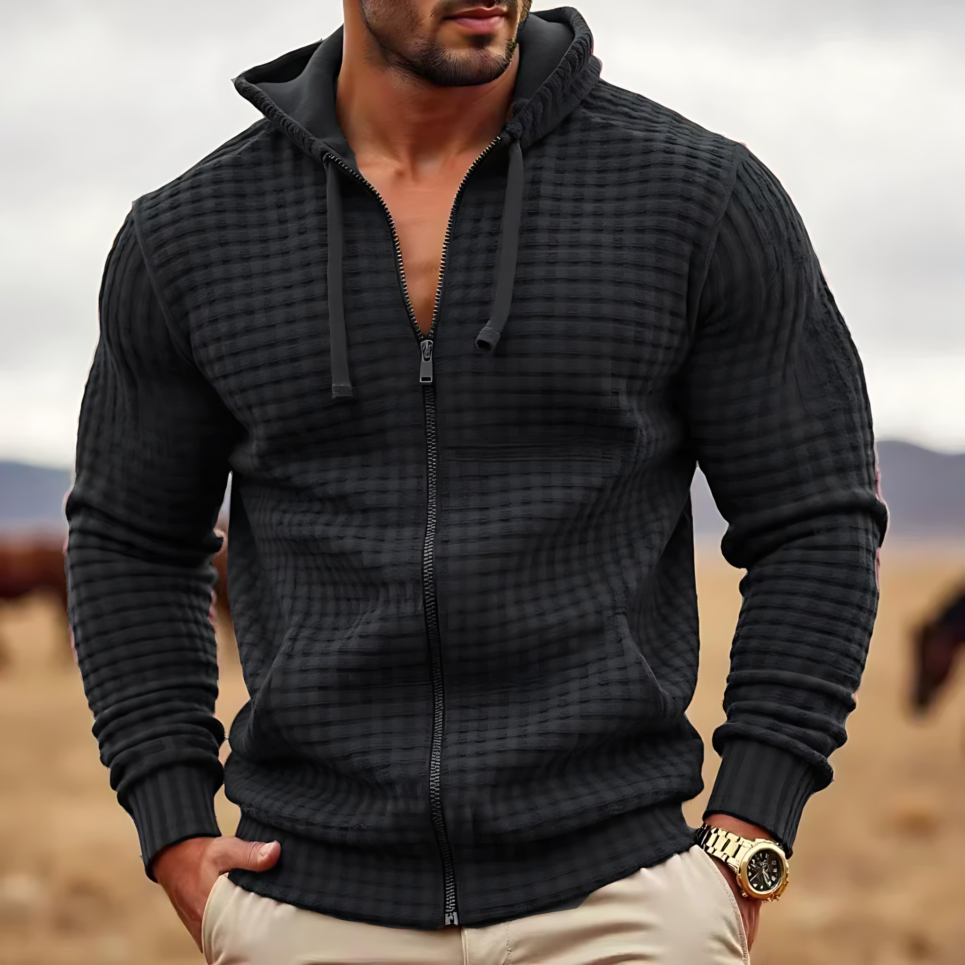Męska - Bluza z kapturem - Dzianina waflowa - Pełny zamek błyskawiczny - Komfort i styl na co dzień
