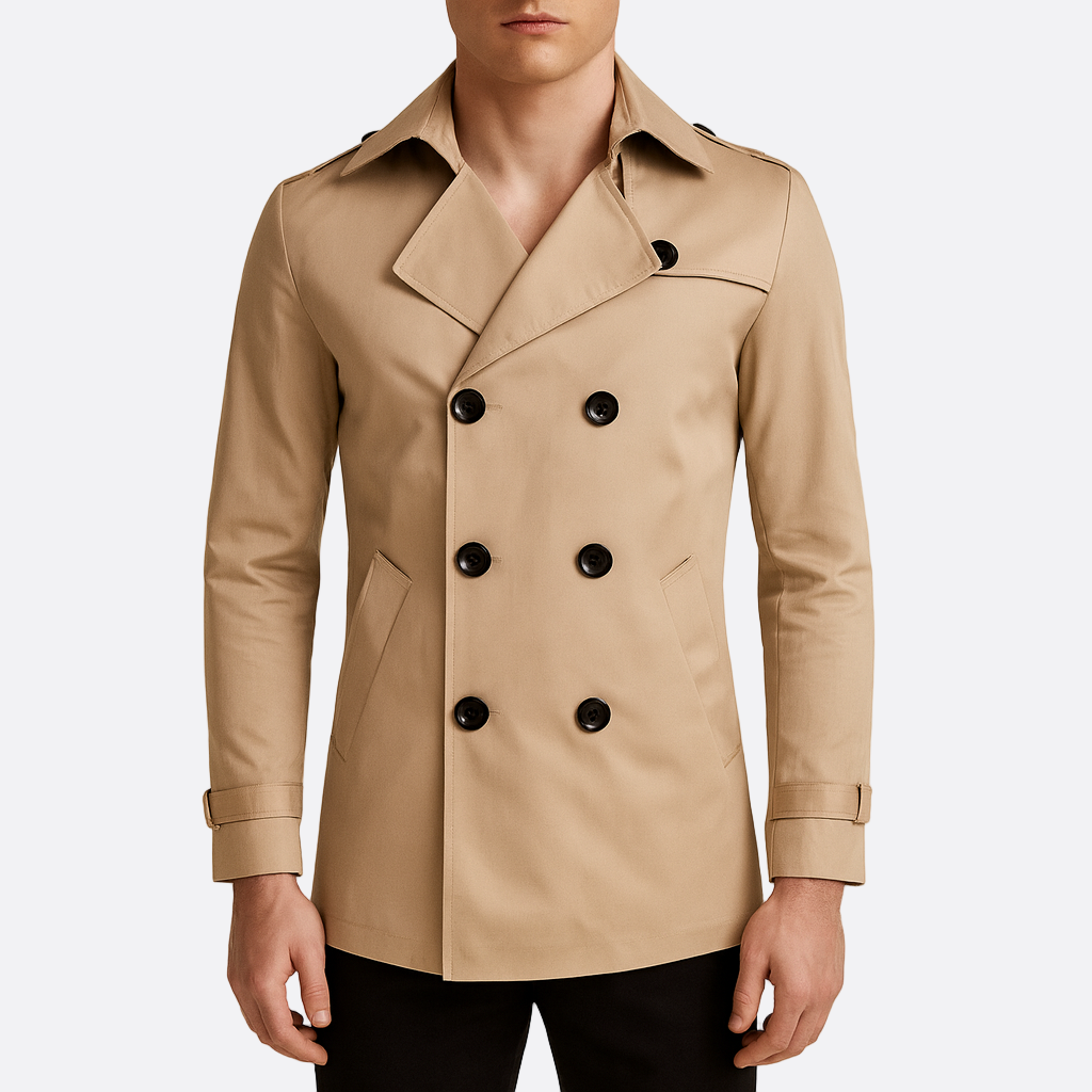 Męska - Dopasowany płaszcz bawełniany - Dwurzędowy - Stylowy i komfortowy wybór na jesień i zimę
