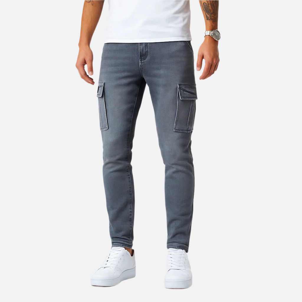 Męska - Jeansy Cargo - Elastycznego materiału - Wygodny krój, uniwersalny styl - Idealne na co dzień