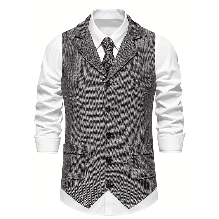 Męska - Kamizelka - Jodełka - Dopasowany Krój, Stylowa i Elegancka