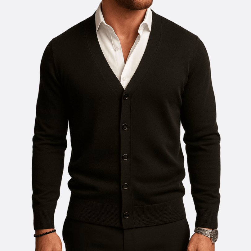Męska - Kardigan - Dekolt w szpic - Ściągacze przy rękawach - Stylowy i komfortowy