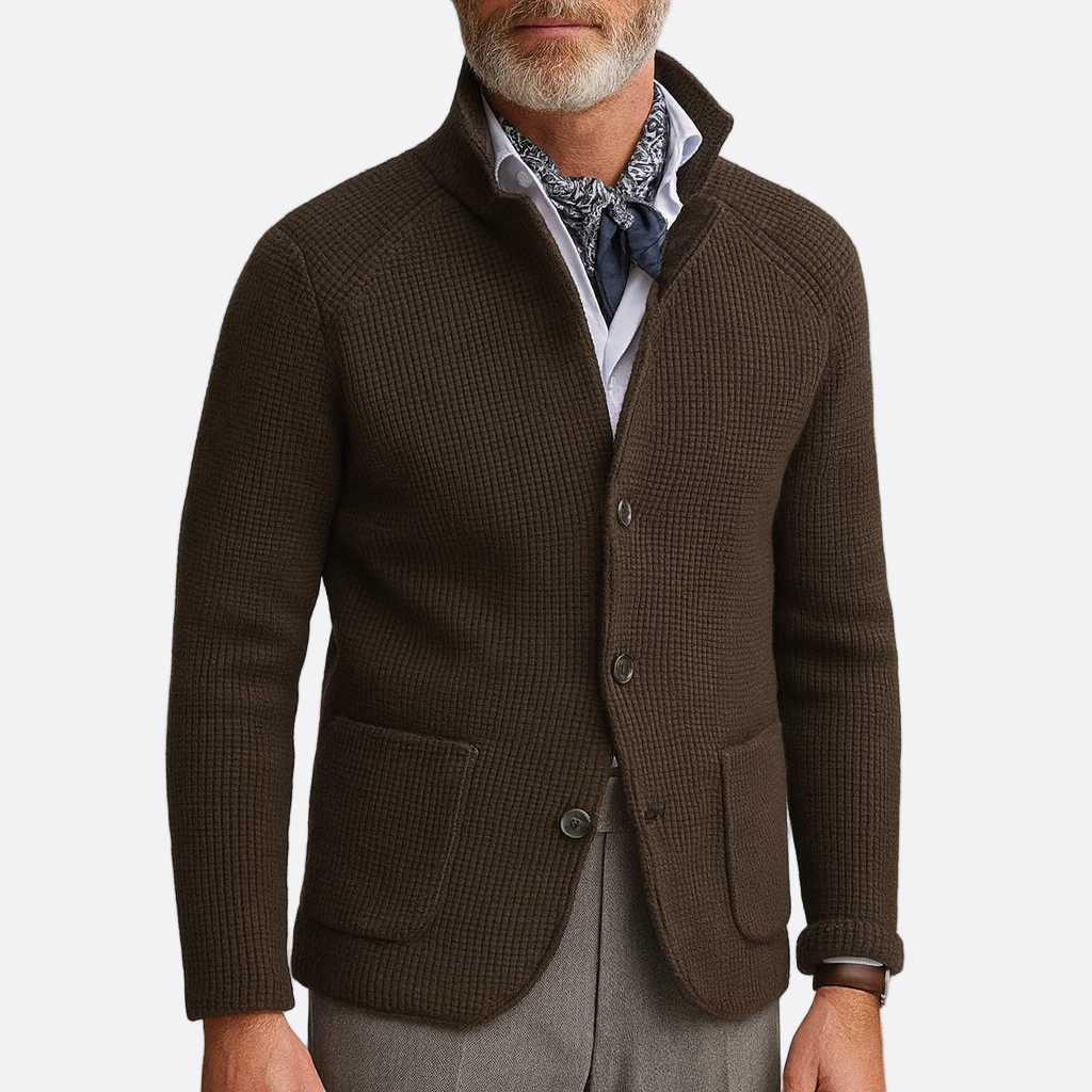 Męska - Kardigan - Teksturowana dzianina ze stójką - Modny i stylowy dodatek na chłodne dni