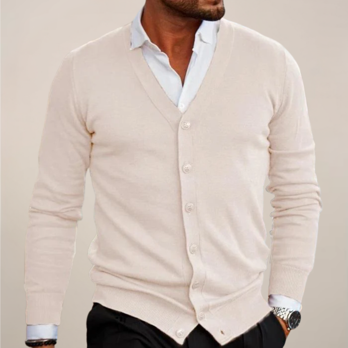Męska - Kardigan z guzikami - Elegancki dekolt w serek - Idealna codzienna warstwa