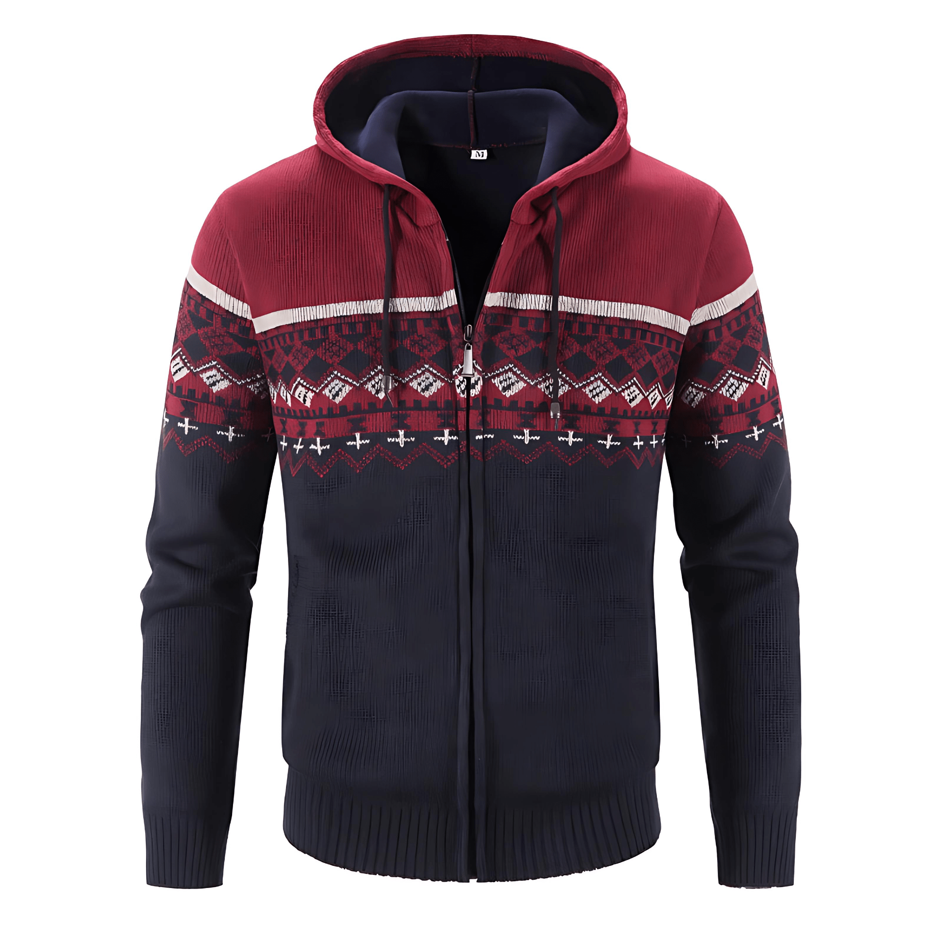 Męska - Kardigan z kapturem w cętki - Norweski wzór - Modne na chłodniejsze dni