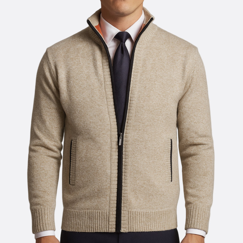 Męska - Kardigan z suwakiem - Stójką - Prążkowanym dołem - Stylowy i wygodny dodatek do każdej garderoby