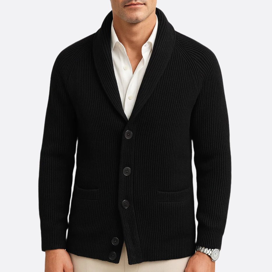 Męska - Kardigan z szalowym kołnierzem - Komfortowy materiał - Styl elegancki na luzie