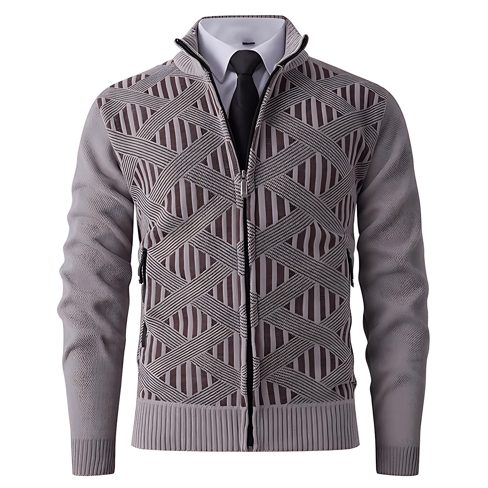 Męska - Kardigan - Zamek błyskawiczny - Nowoczesny design - Stylowy kardigan z dopasowanym krojem