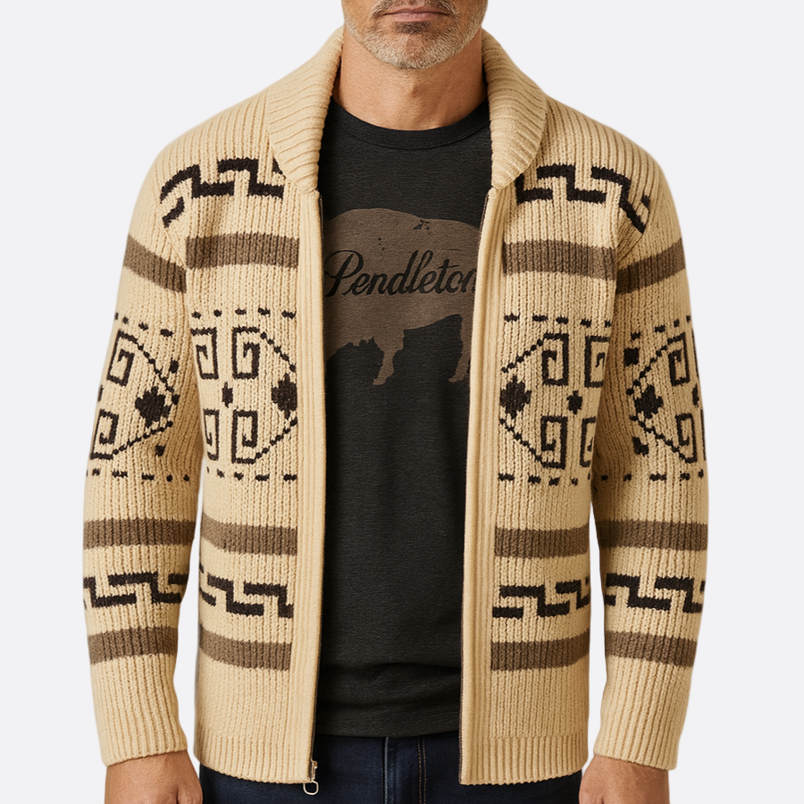 Męska - Kardigan - Zamkiem błyskawicznym - Szalowym kołnierzem - Stylowy komfort na każdą okazję