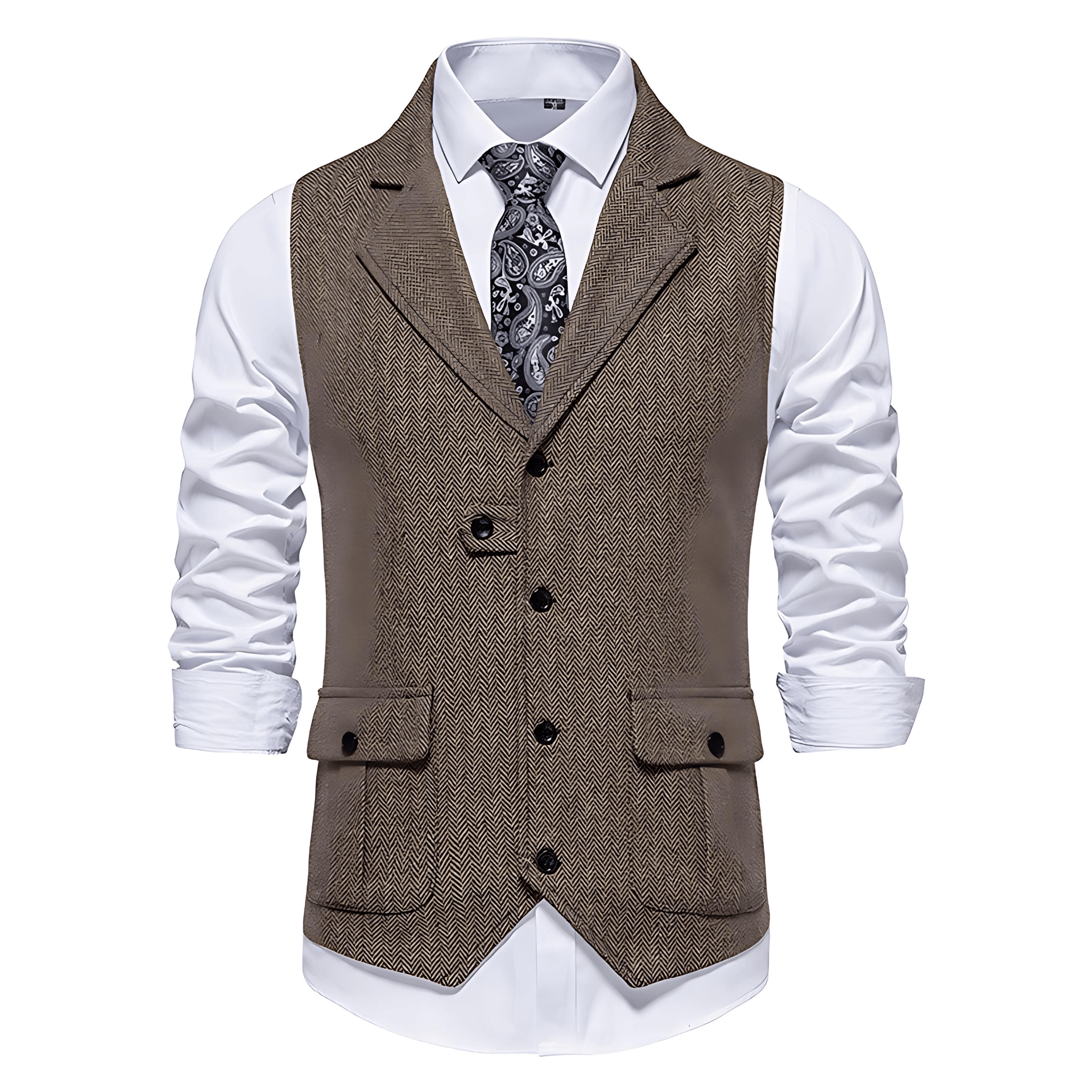 Męska - Klasyczna kamizelka w jodełkę - Elegancka stylizacja na każdą okazję - Kamizelka w jodełkę