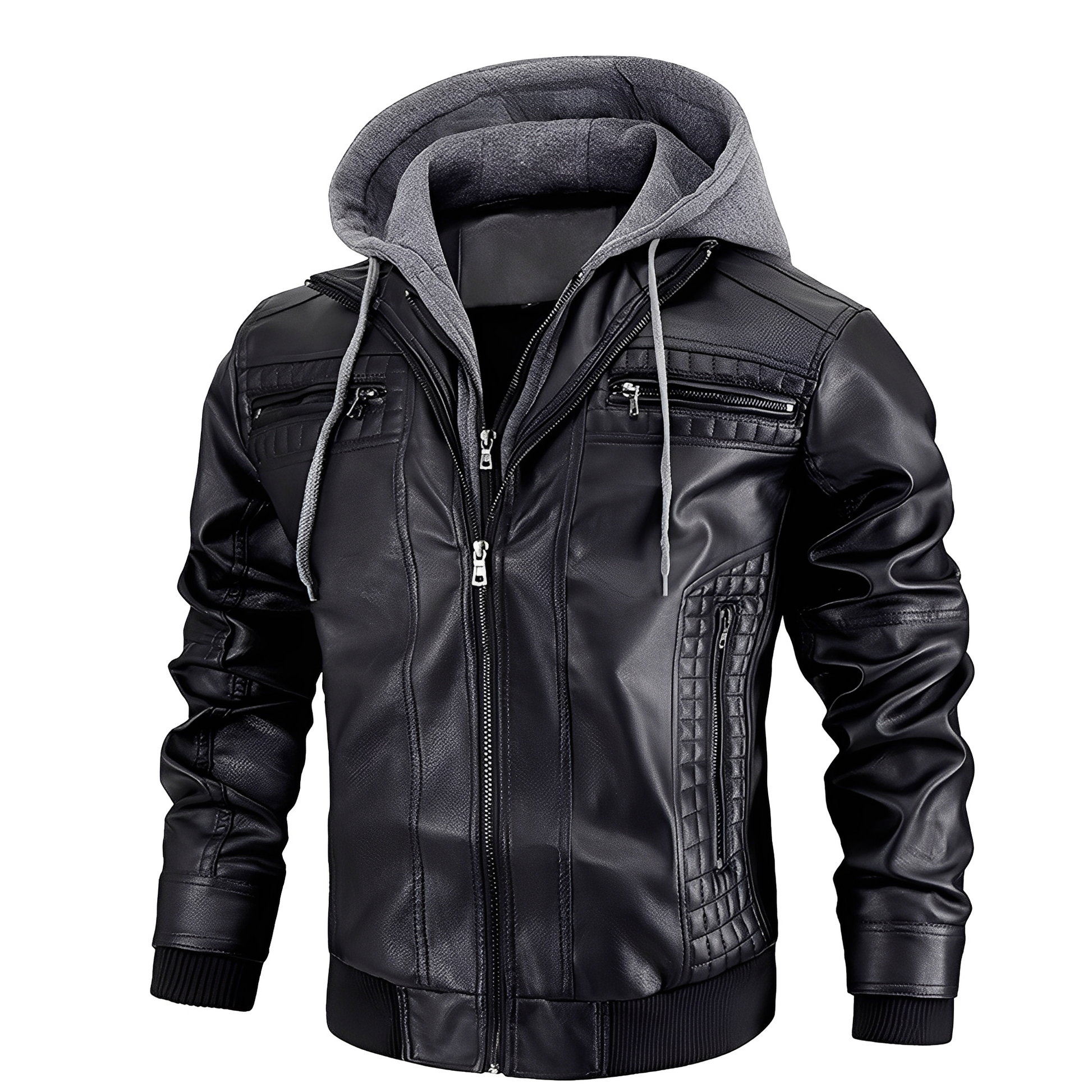 Męska - Klasyczna Kurtka Motocyklowa z Kapturem - Wytrzymały Materiał - Stylowy Strój na Motocykl