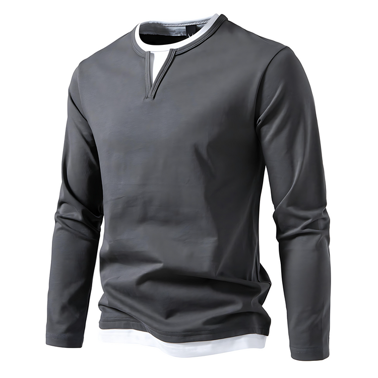 Męska - Koszula - Długim rękawem - Dekoltem w serek i warstwowymi detalami - Stylowa i komfortowa