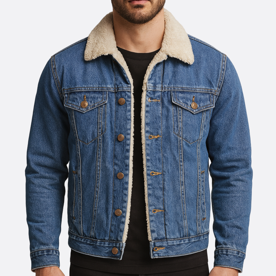 Męska - Kurtka dżinsowa - Ciepłą podszewką - Stylowy design idealny na chłodniejsze dni