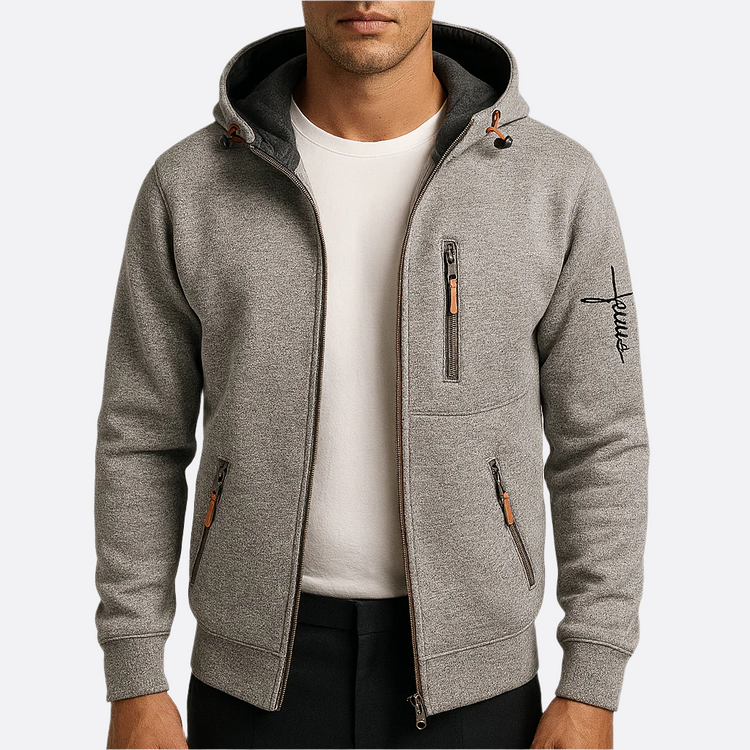 Męska - Kurtka kapturem - Wygodny materiał - Zapinana na suwak - Stylowa odzież codzienna