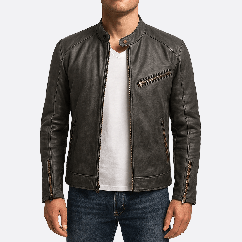 Męska - Kurtka skórzana - Klasyczny styl biker - Skórzana - Idealna na motocykl