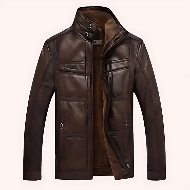 Męska - Kurtka skórzana - Pluszową podszewką - Stylowa i komfortowa odzież wierzchnia