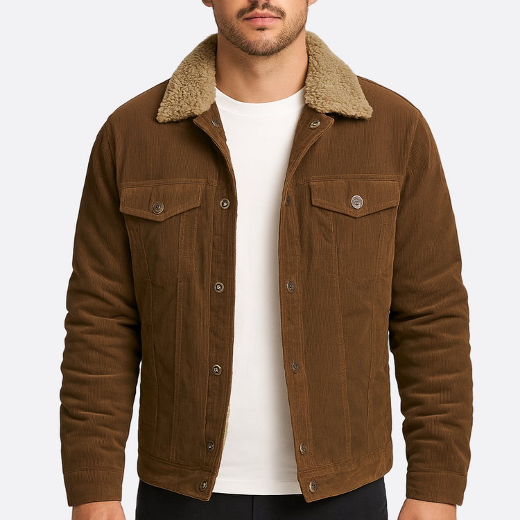 Męska - Kurtka - Sztruksowa - Ciepłą podszewką - Stylowa i komfortowa odzież na chłodne dni