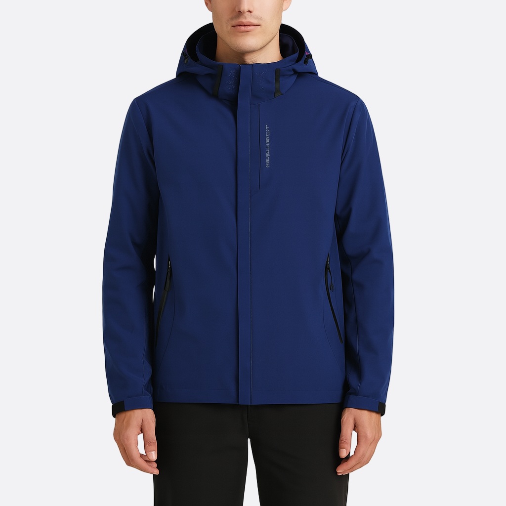 Męska - Niebieska wiatrówka - Poliestru - Wodoodporna z kapturem - Idealna na deszczowe dni