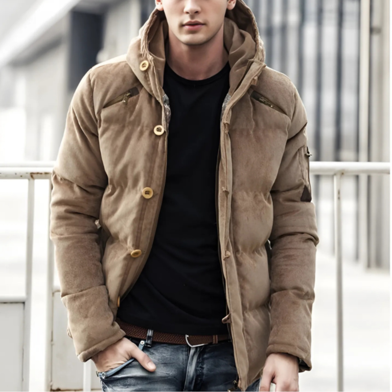 Oferujemy ocieplany, wyściełany płaszcz męski, idealny na chłodniejsze dni, który łączy w sobie styl i funkcjonalność. Jego luźny krój, bezpieczne zapięcie na suwak oraz wysoki kołnierz zapewniają komfort i ochronę przed zimnem. Doskonale komponuje się z dżinsami lub chinosami, co czyni go idealnym wyborem na codzienne aktywności. Wykonany z miękkiej, ciepłej mieszanki tkanin, ten płaszcz to must-have w każdej zimowej garderobie.