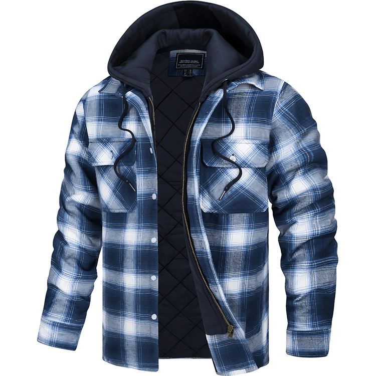 Męska - Pikowana bluza - Kapturem - Zapinana na zamek, w kratę - Stylowy komfort na co dzień