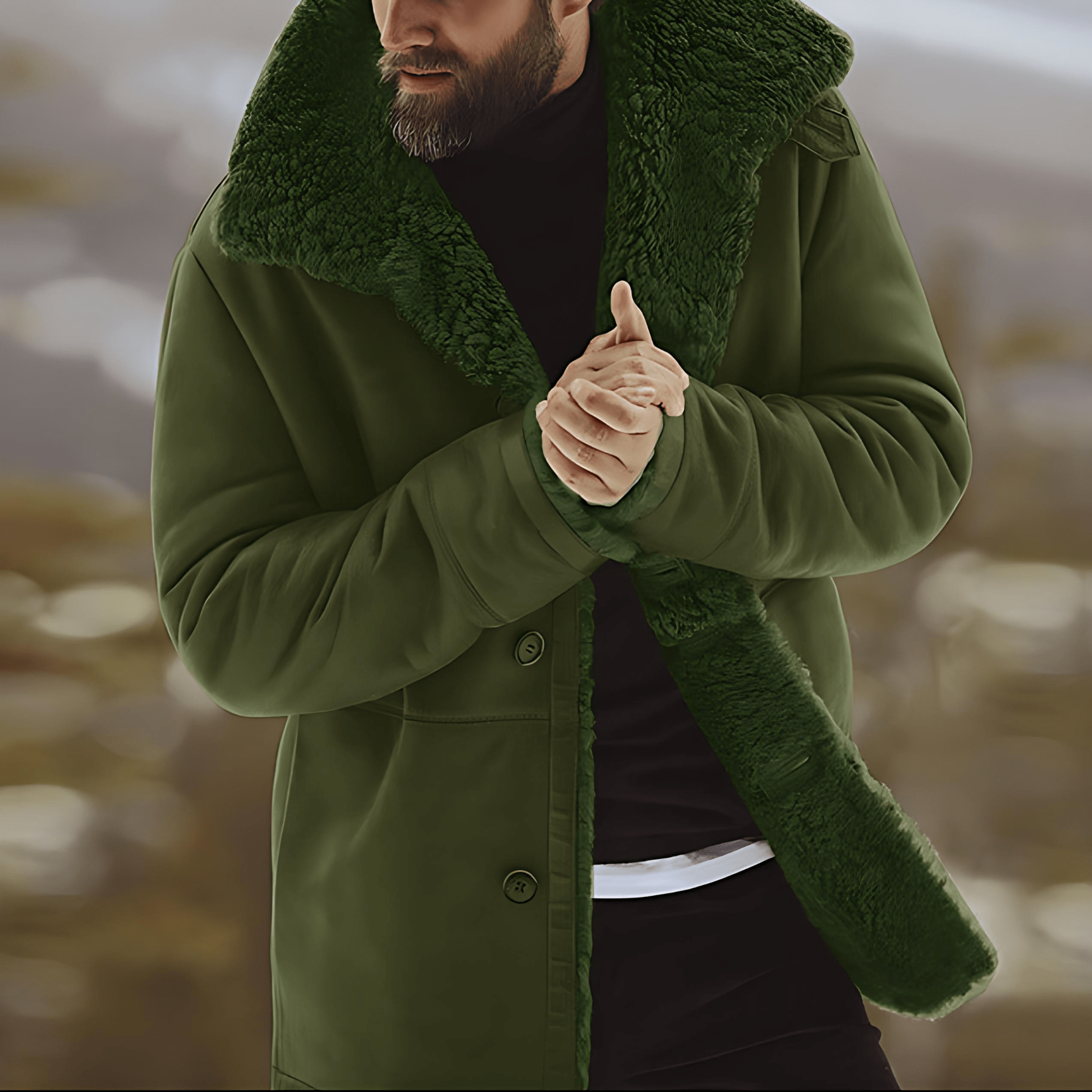 Męska - Płaszcz - Futrzanym kołnierzem - Stylowy i komfortowy - Idealny na chłodne dni