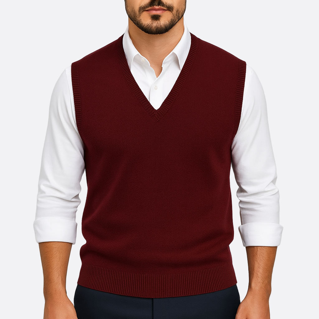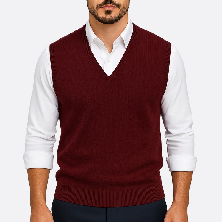 Męska - Sweter bez rękawów - Dzianinowy styl - Dekoltem w szpic - Modny i wygodny wybór na każdą okazję