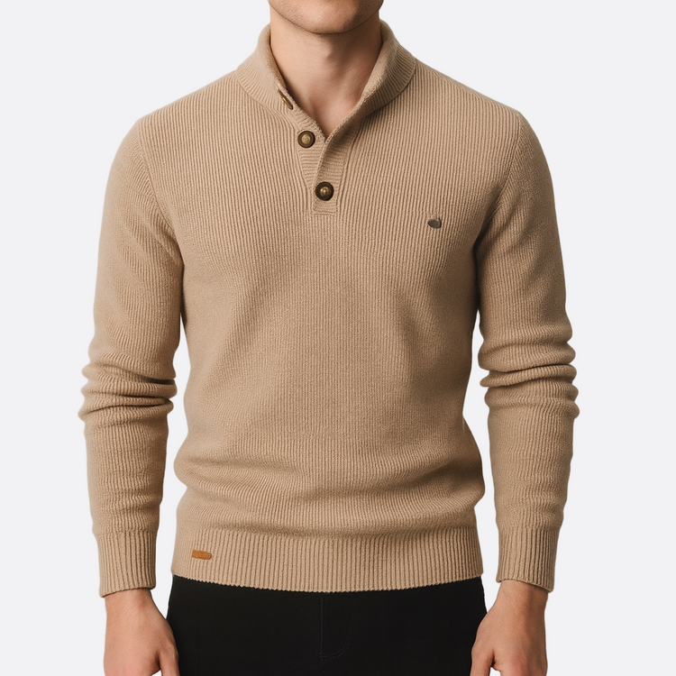 Męska - Sweter dzianinowy - Dopasowanym kroju ze stójką - Stylowy, komfortowy i elegancki