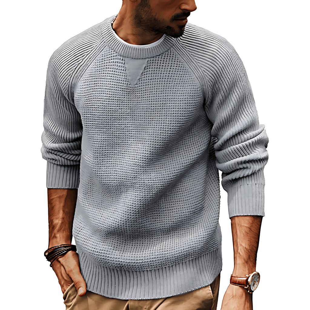 Męska - Sweter dzianinowy - Teksturowany z okrągłym dekoltem - Idealny na chłodne dni
