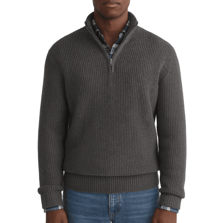 Ten męski sweter z prążkowanej dzianiny to idealne połączenie komfortu i stylu, które doskonale sprawdzi się na każdą okazję. Wykonany z miękkiego materiału z domieszką bawełny, z wysokim kołnierzem zapinanym na ćwierć zamka błyskawicznego, zapewnia ciepło oraz łatwość zakładania. Teksturowana dzianina dodaje wyjątkowego charakteru, czyniąc go doskonałym wyborem zarówno do eleganckich stylizacji, jak i na relaksujące dni w domu. Wprowadź do swojej garderoby ten uniwersalny sweter, który z pewnością umili chłodne dni.