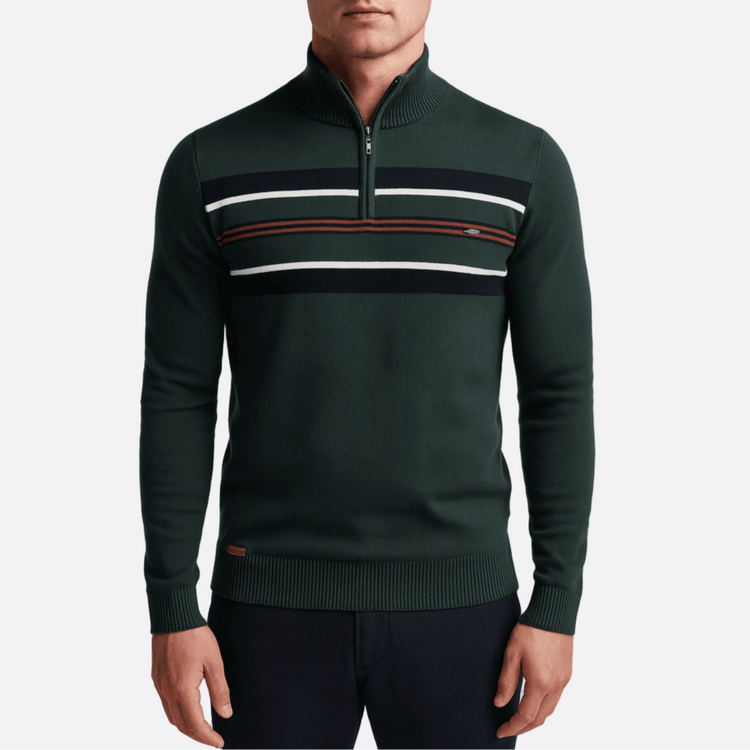 Męska - Sweter w paski - Połową zamka błyskawicznego - Kontrastowy wzór - Modny styl na każdą okazję