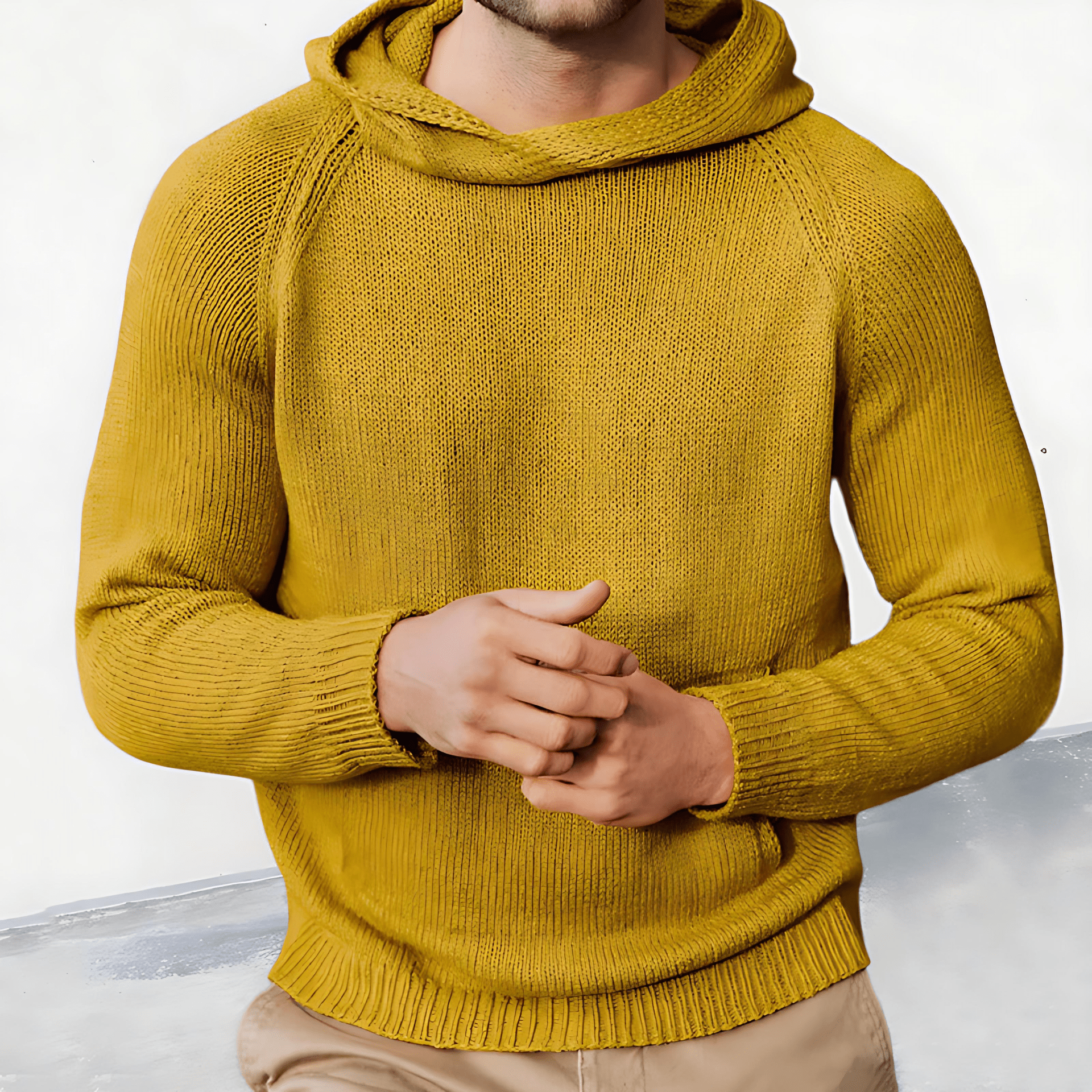 Ten męski sweter z dzianiny z modnym kapturem łączy wygodę z wszechstronnością, stanowiąc nieodłączny element każdej garderoby. Drobna siateczkowa struktura zapewnia doskonałą oddychalność, a komfortowy krój umożliwia swobodę ruchów - idealny na codzienne wyjścia i spotkania. Nowoczesny kaptur dodaje stylowego akcentu oraz chroni przed zmieniającymi się warunkami pogodowymi. Łatwo zestawisz ten sweter z dżinsami lub spodniami chinos, tworząc elegancki i praktyczny wygląd na każdą okazję.