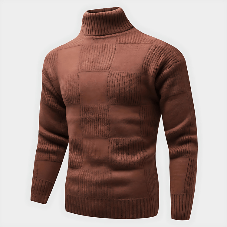 Męska - Sweter z golfem - Prążkowana wełna w kratę - Stylowy i ciepły sweter na chłodne dni
