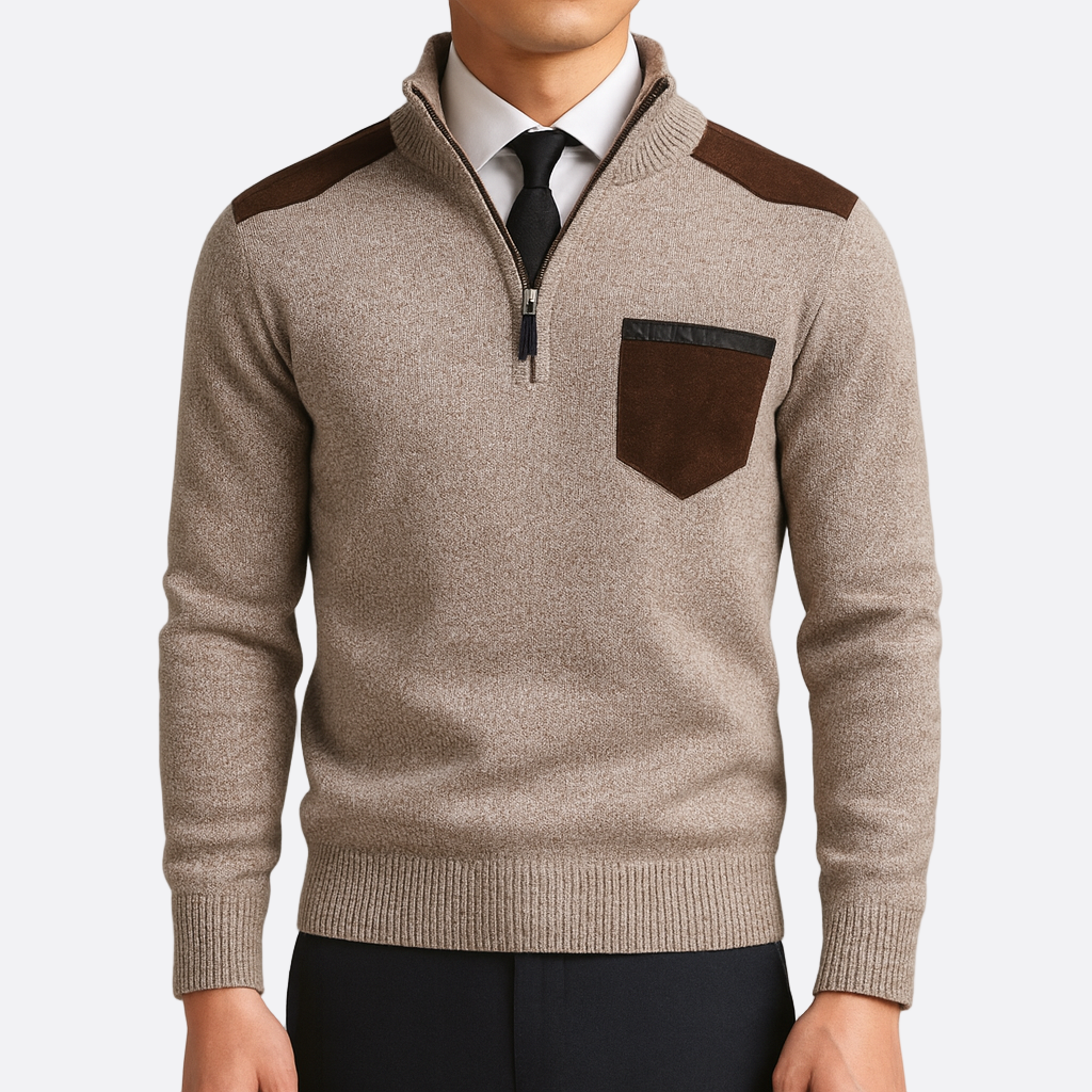 Męska - Sweter z zamkiem błyskawicznym - Kontrastowe panele - Stylowy i wygodny sweter na chłodniejsze dni