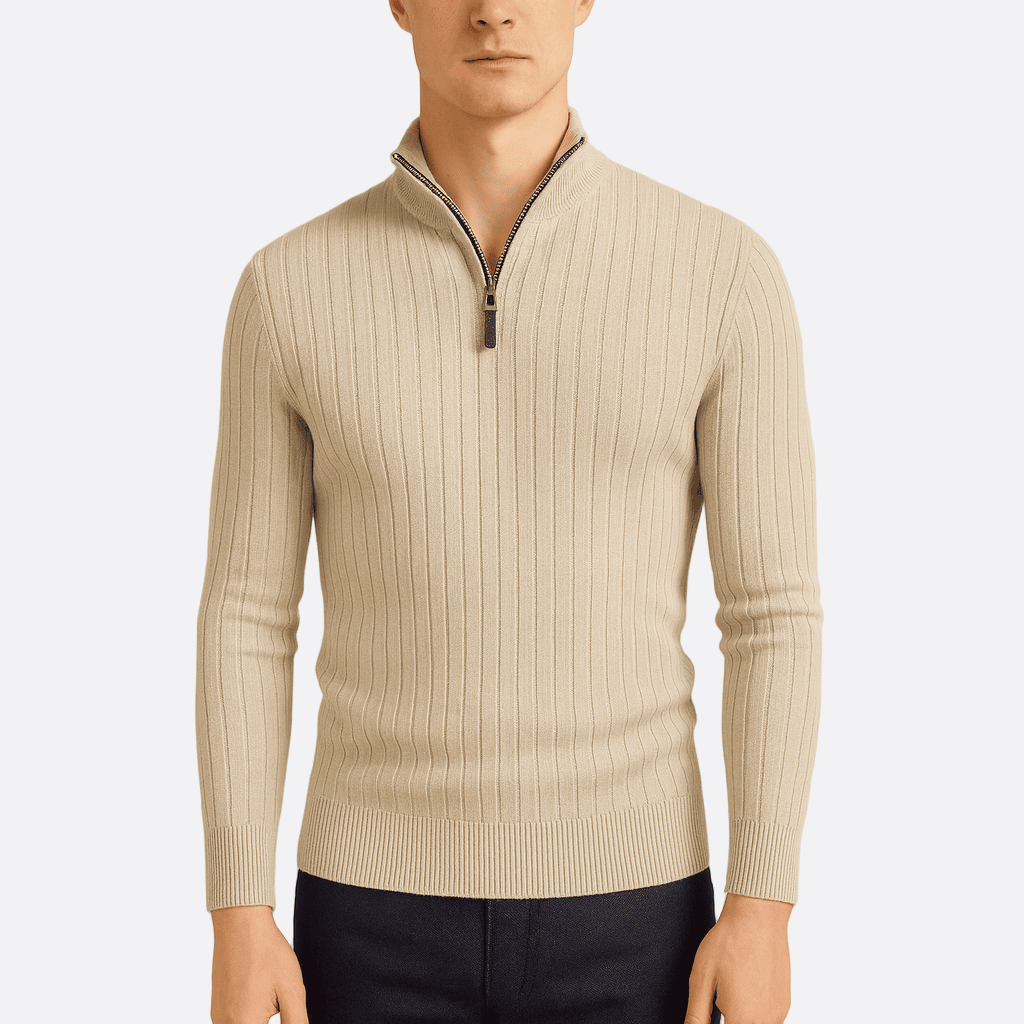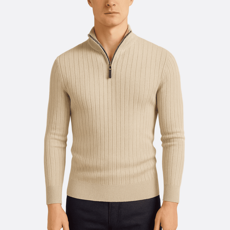 Męska - Sweter - Zamkiem błyskawicznym - Miękki prążkowany materiał - Modny sweter na każdą okazję