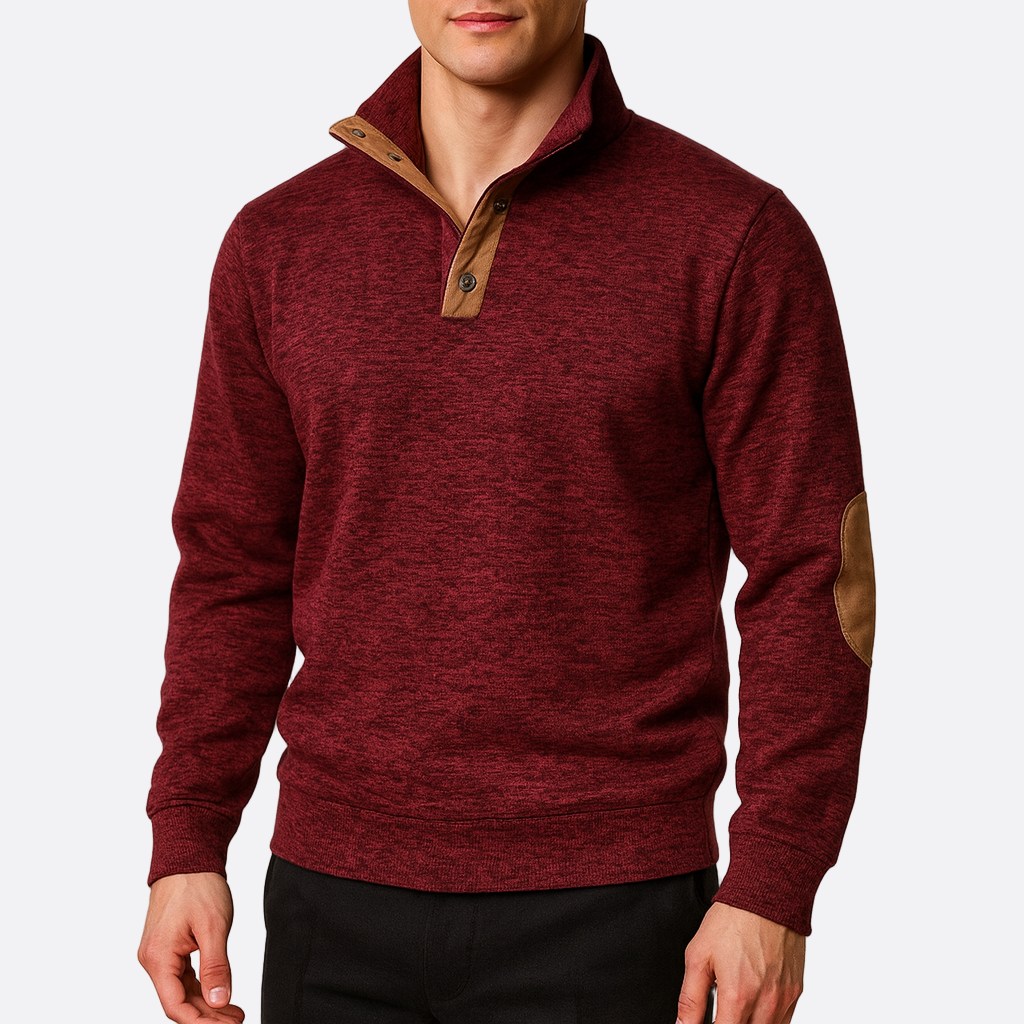 Elegancki sweter męski zapinany pod szyję na guziki z modną stójką, idealny na chłodniejsze dni. Wzmocnione łaty na łokciach nie tylko dodają stylu, ale także zwiększają trwałość tego uniwersalnego ubrania. Wykonany z wygodnej dzianiny, doskonale sprawdzi się zarówno w codziennych, jak i bardziej formalnych stylizacjach. Komfort i klasyczny wygląd w jednym – idealny wybór dla każdego mężczyzny.