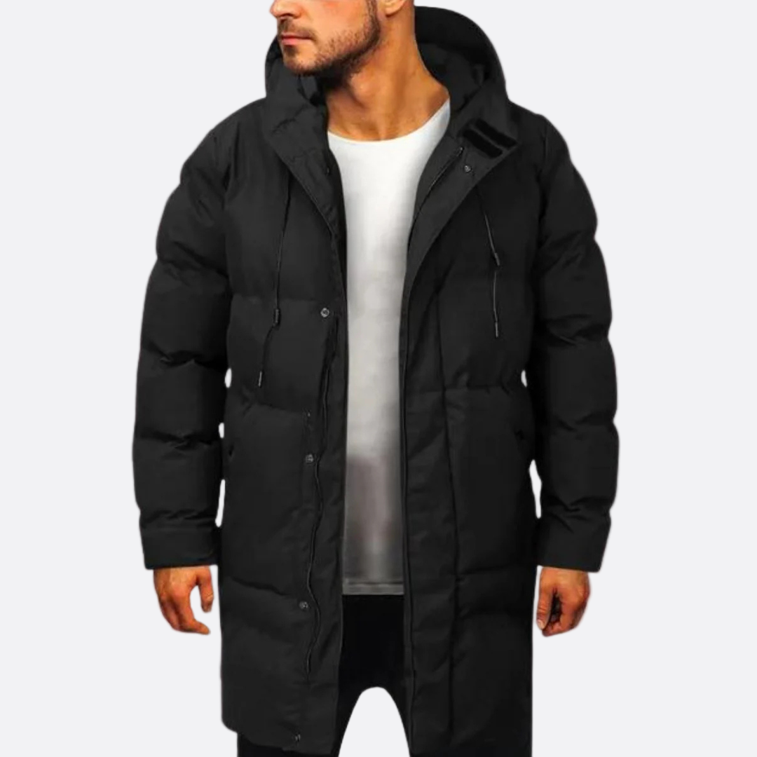 Męska - Zimowa kurtka pikowana z kapturem - Stylowy materiał - Ciepła odzież na chłodne dni